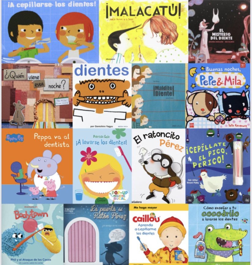 Por eso un día decidí hacer un listado de cuentos, y poder ofrecer a las familias ese recurso. He procurado incluir en la lista cuentos en los que la higiene se hiciera de manera correcta (sin aclararse con agua por ejemplo) y que si hablaban de la visita al dentista lo hicieran de manera positiva, que puedan hablar del miedo a acudir a un lugar desconocido, pero no el tratar la visita al dentista como esa situación en la que hay que ser valiente porque todo el mundo teme. También, como no, aparecen en la lista cuentos sobre el ratón Pérez, personaje ilustre del que se ha escrito mucho.